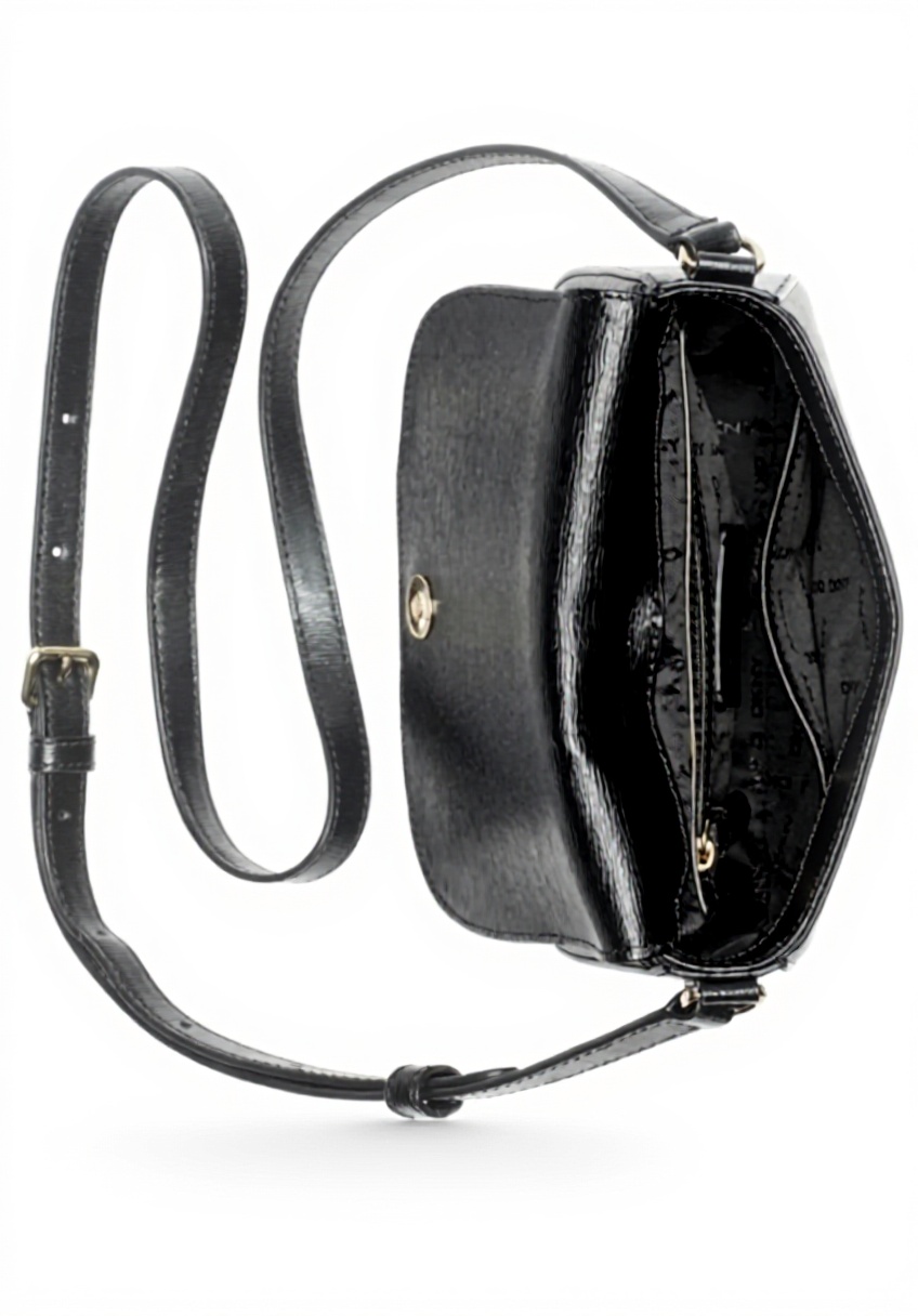 Le sac bandoulière DKNY Bryant se distingue par son design contemporain et son fini noir avec des accents dorés. Fabriqué avec soin, il allie durabilité et esthétique pour un accessoire mode intemporel.